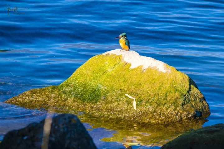 今天本来只是被一只海鸥冲进水里反复叼鱼的场景吸引才在洱海边逗留,意外的是突然从眼前划过一道打鸟人都很熟悉的“彩色”,当即反应过来:“这里竟然也有翠鸟!”于是连忙遁迹而去,很快就在岸边的岩石上发现了它的身影。