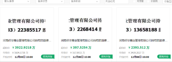公开信息显示,本次拍卖股份共被拆分为三笔,将在12月分别以3922.92万元、2393.51万元以及397.53万元的起拍价进行拍卖,市场总价为9591.37万元。