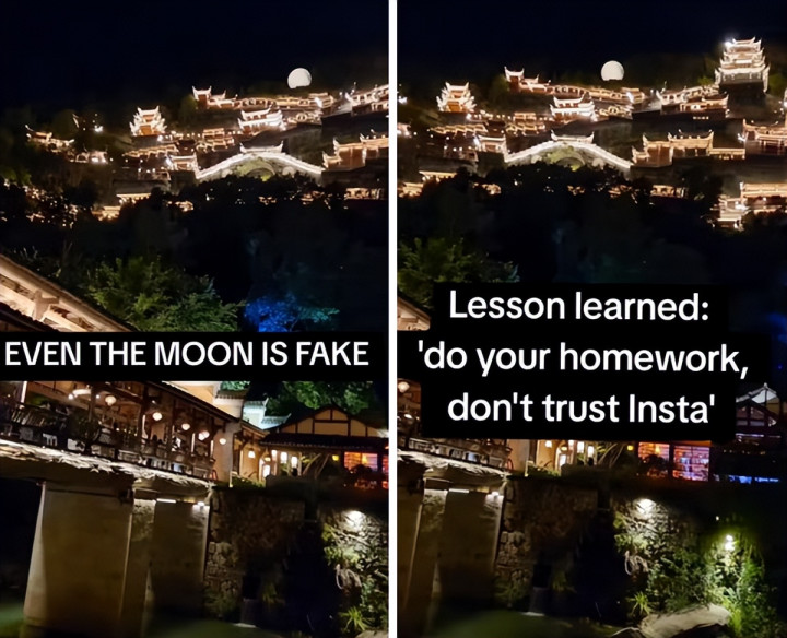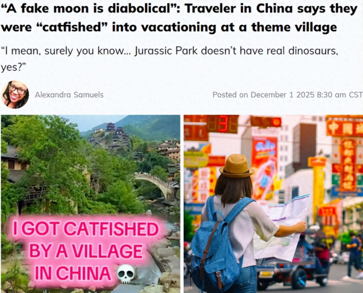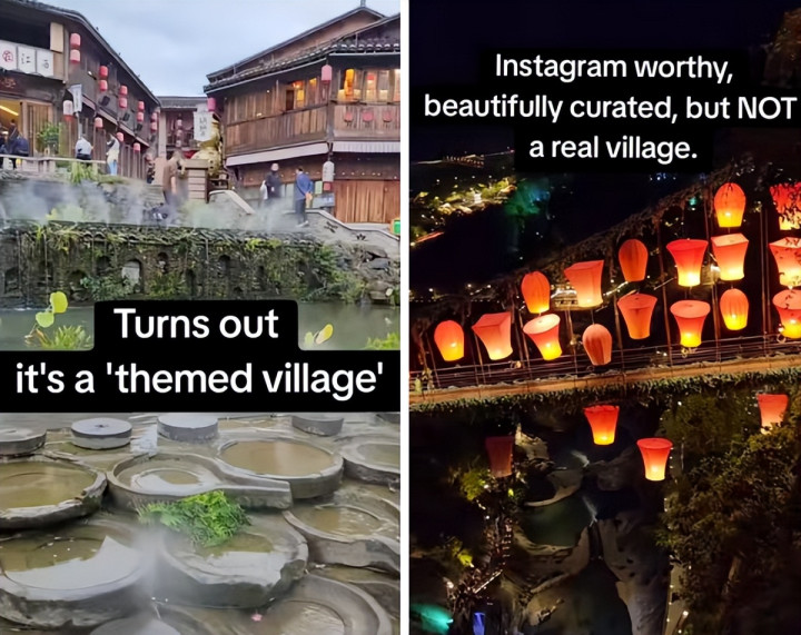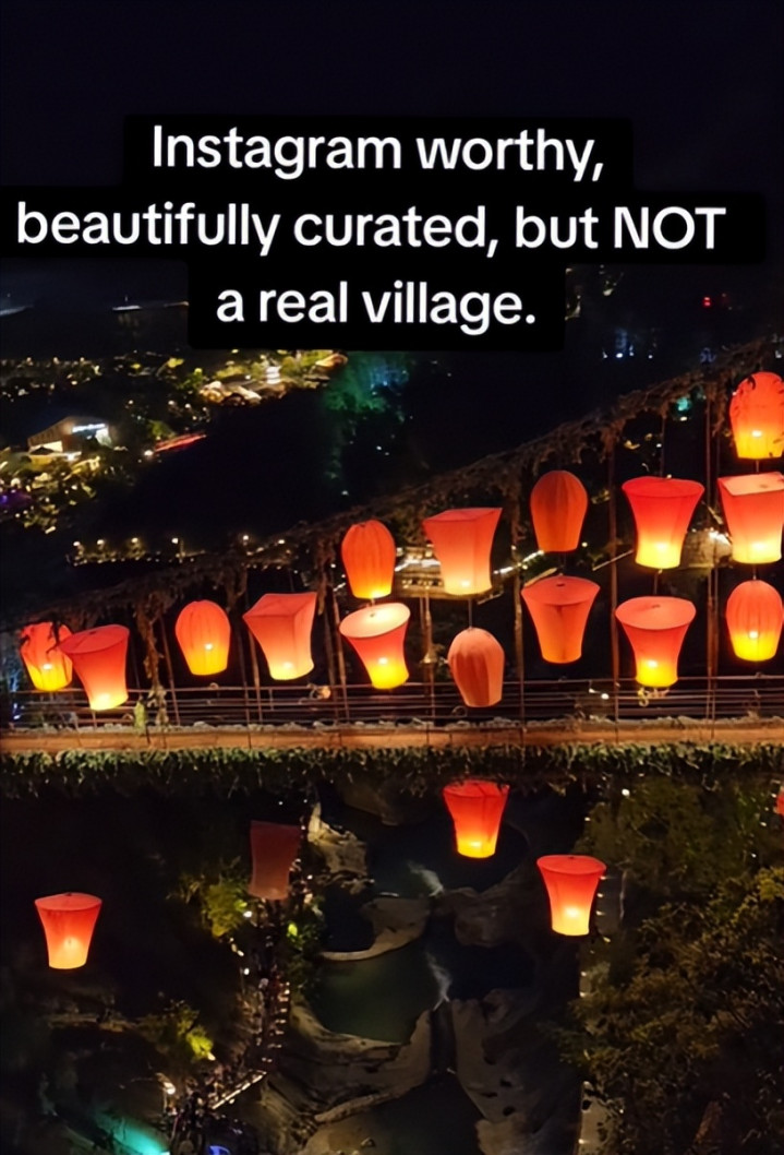 “我发现那里并不是一个真正的村庄,而是一个‘主题村庄’,这里很适合在Instagram上展示,而且布置得十分精美,但实际上是在弄虚作假,就连月亮也是假的。”