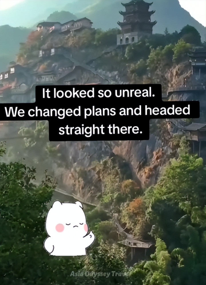 我在照片上看到的是郁郁葱葱的绿树、壮观的山景,甚至还有专门的表演,那看起来就像仙境一般,所以我们改变了计划。”